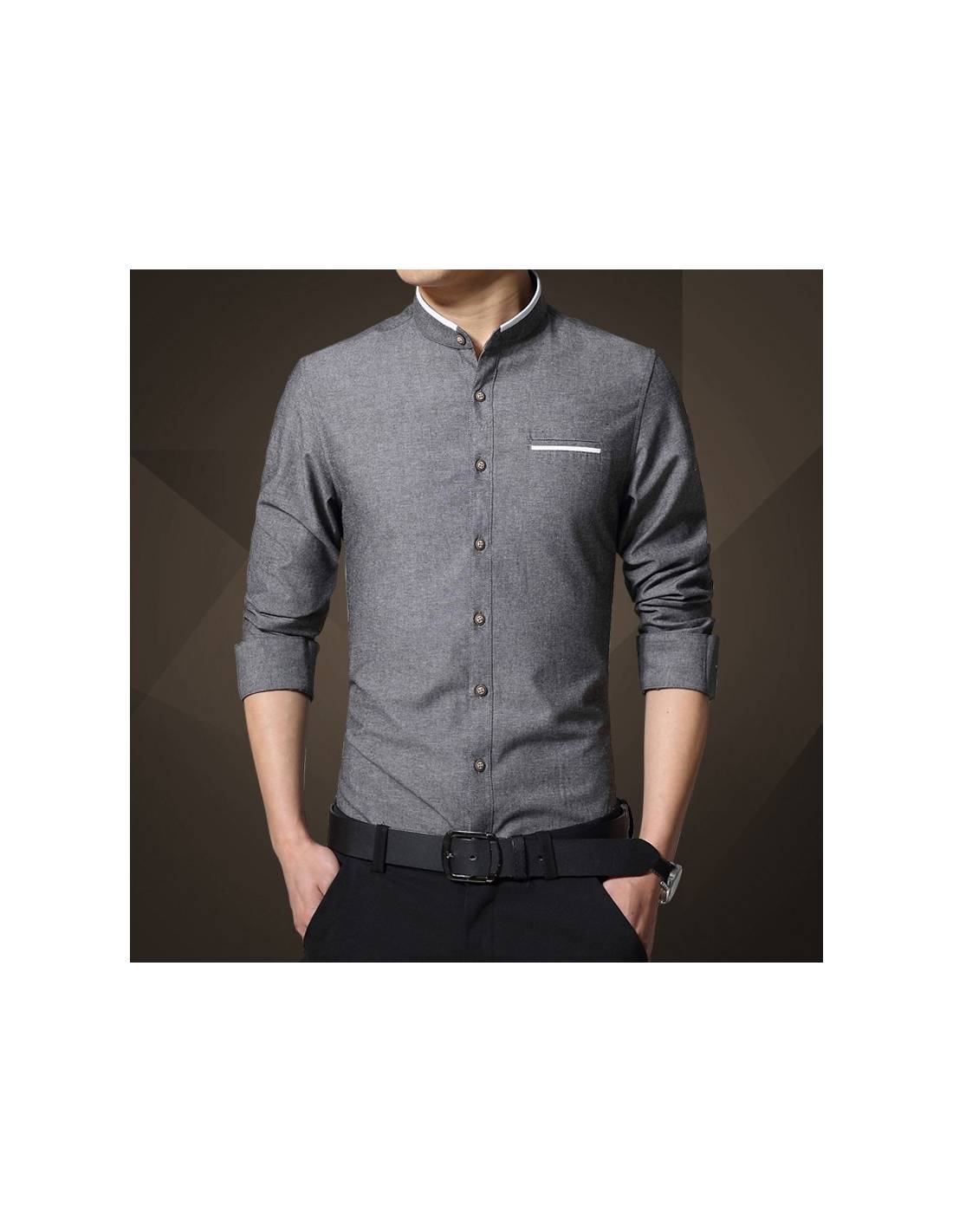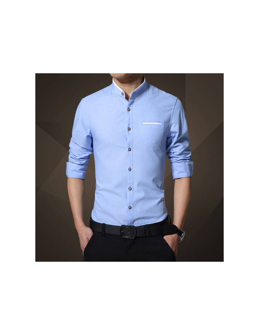 Chemise col mao liseré blanc manches longues