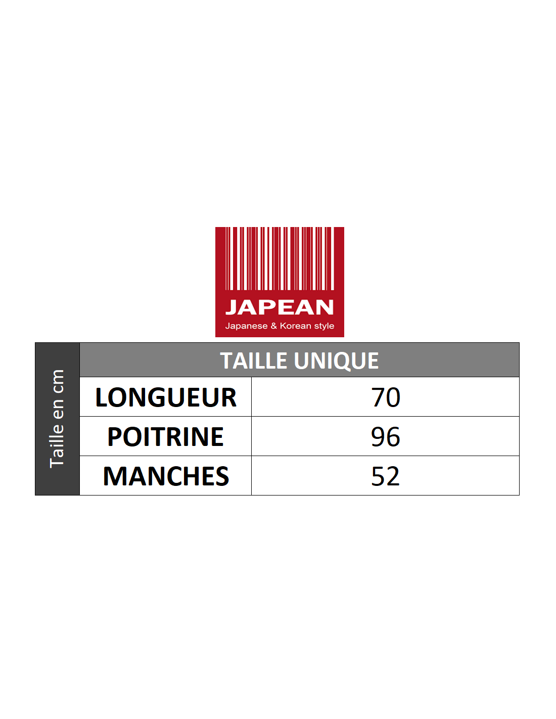 Conseil Japean : Les mensurations sont indiquées dans la galerie d'images ! Lavage à la main recommandé ou en machine à basse température.