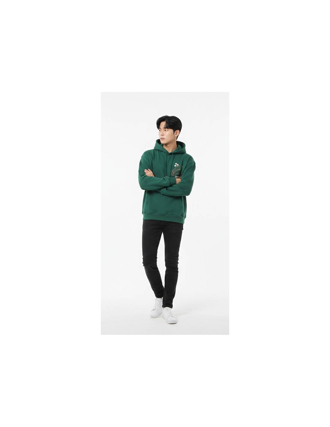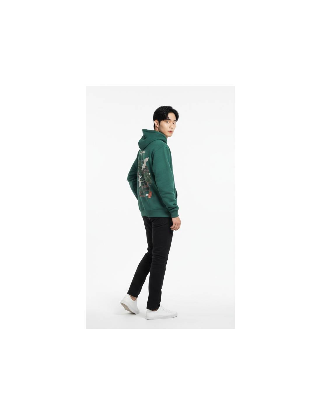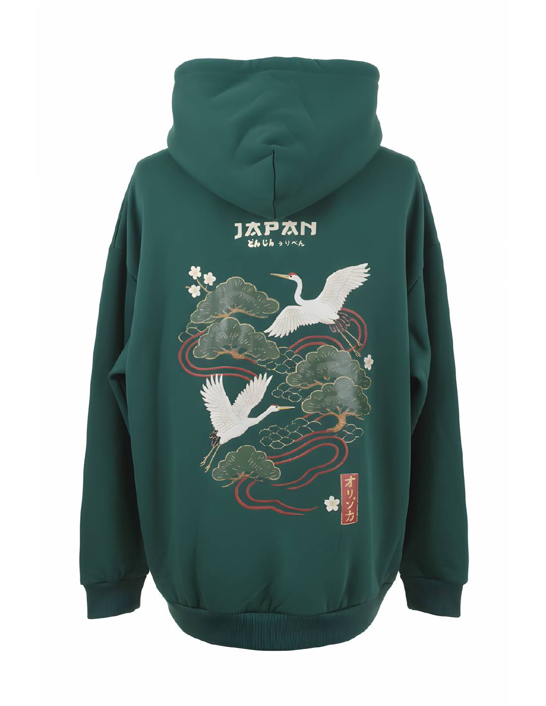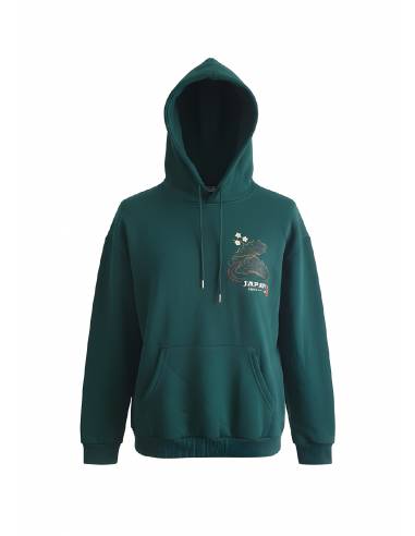 Ce pull à capuche vert impose son style avec un imprimé détaillée de grues et pins japonais, inspirée de l’esthétique traditionnelle nippone. Le rendu ? Un look à la fois élégant, minimal et ultra street, parfait pour ceux qui veulent marquer les esprits sans en faire trop.