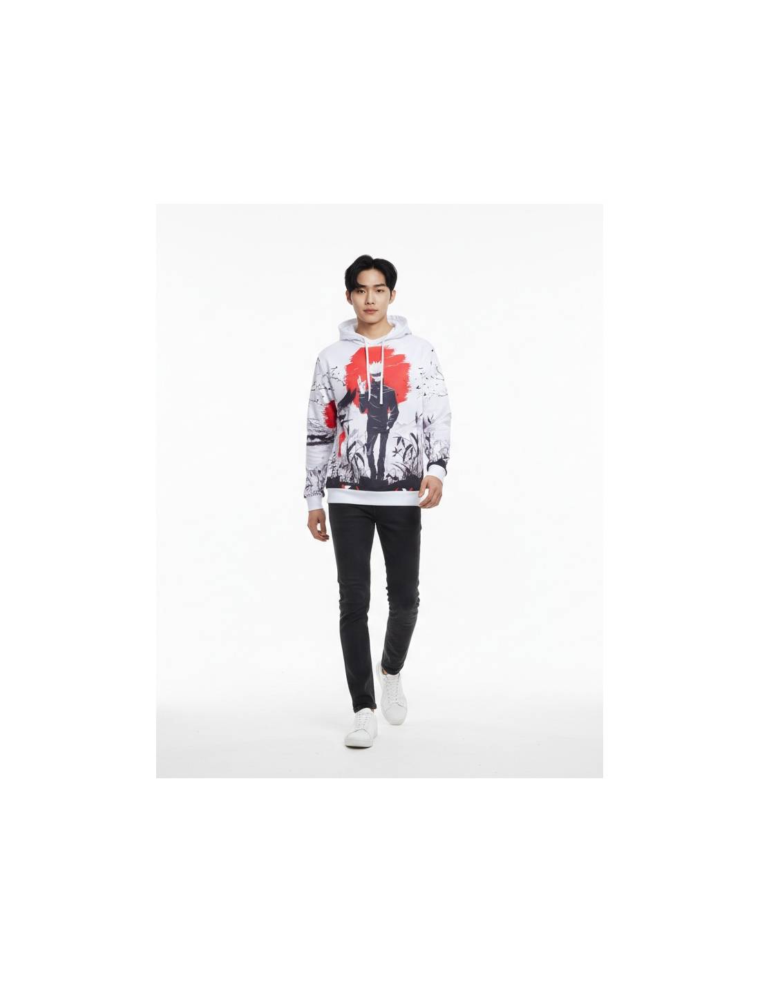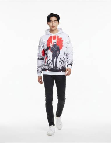 Le Hoodie Satoru Gojo impose un style fort inspiré de Jujutsu Kaisen avec un visuel impactant en impression intégrale. Son design contrasté rouge, noir et blanc donne une vraie vibe manga japonaise moderne et audacieuse.
